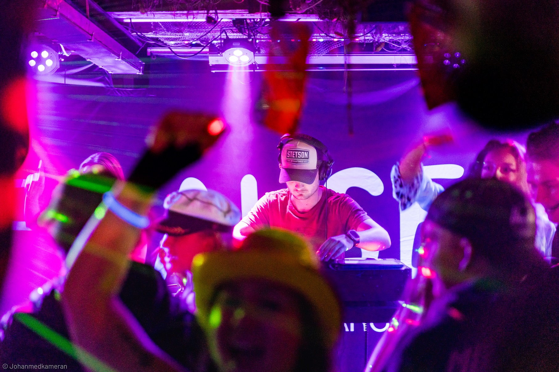 DJ Magnusson står mixerbordet och håller dansgolvet glödande hela natten.